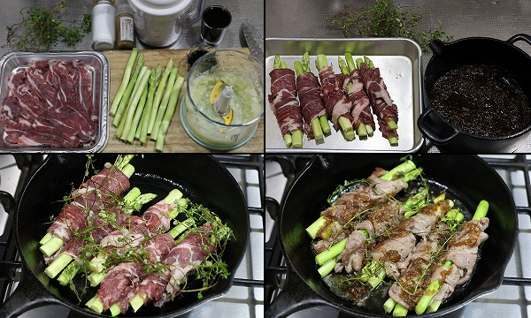 ラム肉で作る、アスパラガスの肉巻き。