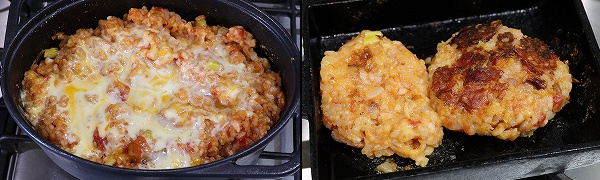 ![]() R3.8/29 オーバルDOで焼きリゾット(左)、 R3.8/30 角型ミニパンでこんがり焼いた(右) |