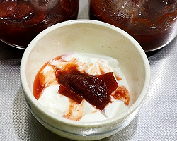 ![]() 左2本はR7.12/21、2kgの花梨で作ったジャム 右2本がハンドブレンダーで潰したもの(R8.1/2) |