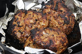 R8.1/25の料理対決の日はかなり冷え込み肉が冷たかったことに加え、肉も大きかったため火を通すのに70分くらいかかり、その後アルミホイルで包み、余熱で火を通した。