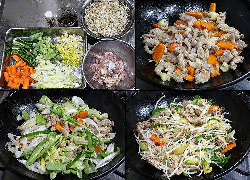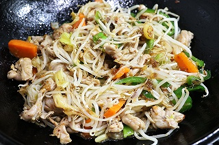 ダッチオーヴン・レシピ集>肉料理>鶏肉>炒めもの ダッチオーヴン・レシピ集>野菜料理>葉菜類(長ネギ・タマネギ) ・発芽野菜(モヤシ) |